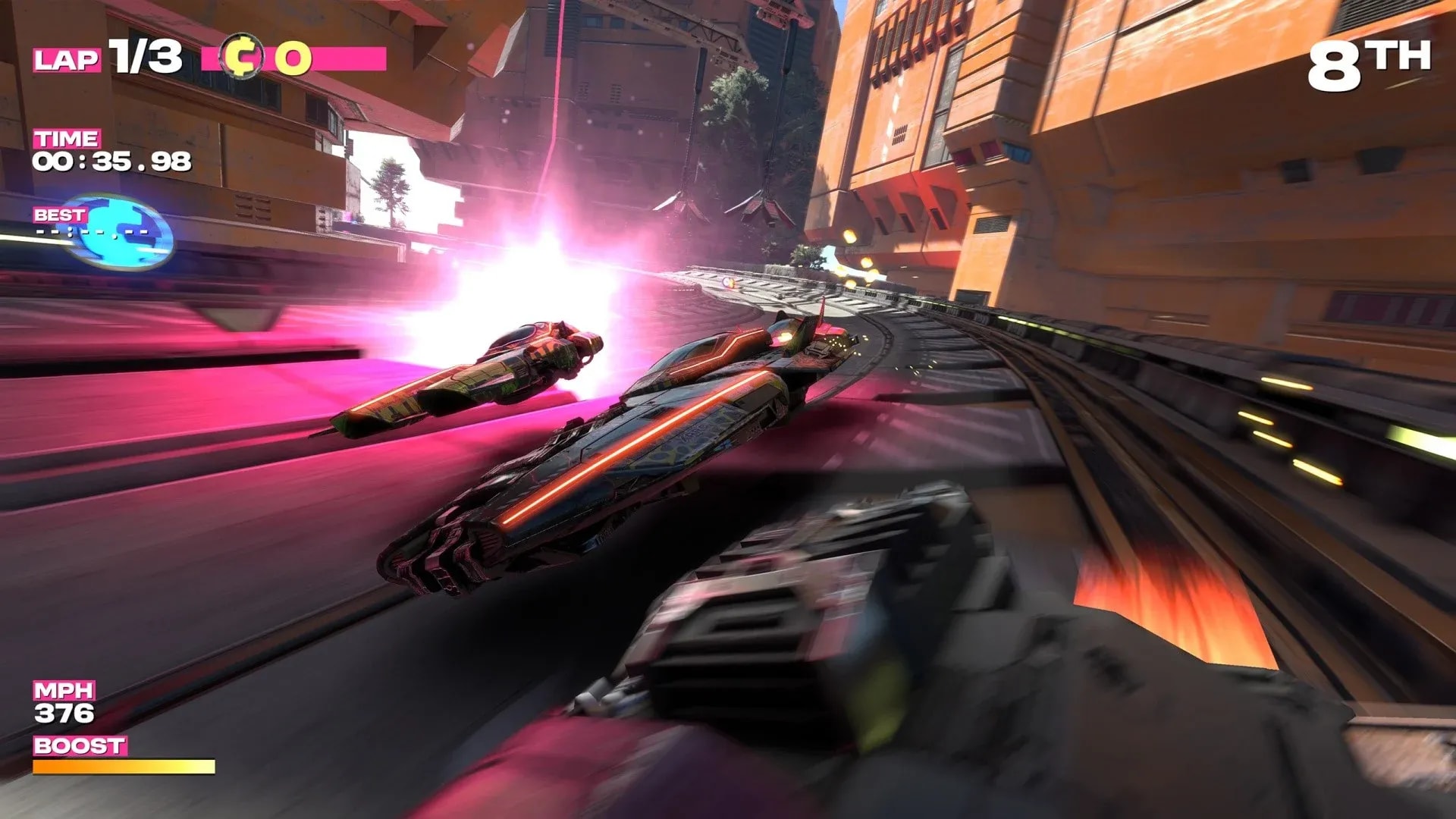 Die neuen Kurse Alpine Trust, Sunahara Plains und Zenshoh Habitat basieren auf bekannten Strecken aus Fast RMX, wurden grafisch überarbeitet und an das neue Hyperjump-Feature angepasst. Der neue „Pure“-Modus rendert nativ mit 1440p im TV-Modus und 1080p im Handheld-Modus.